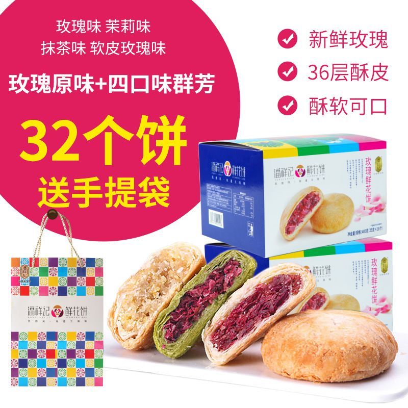 嘴饞精選【潘祥記】鮮花餅雲南特產正宗玫瑰花餅傳統糕點零食休閒食品禮盒裝