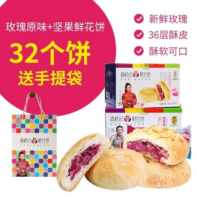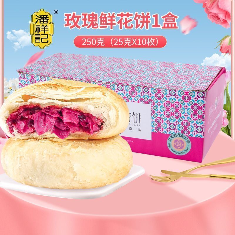 嘴饞精選【潘祥記】鮮花餅雲南特產正宗玫瑰花餅傳統糕點零食休閒食品禮盒裝