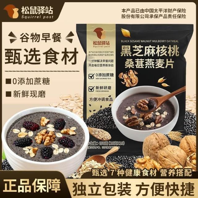 娜娜精選松鼠驛站黑芝麻核桃桑葚燕麥片早餐粥芝麻糊450g獨立包裝