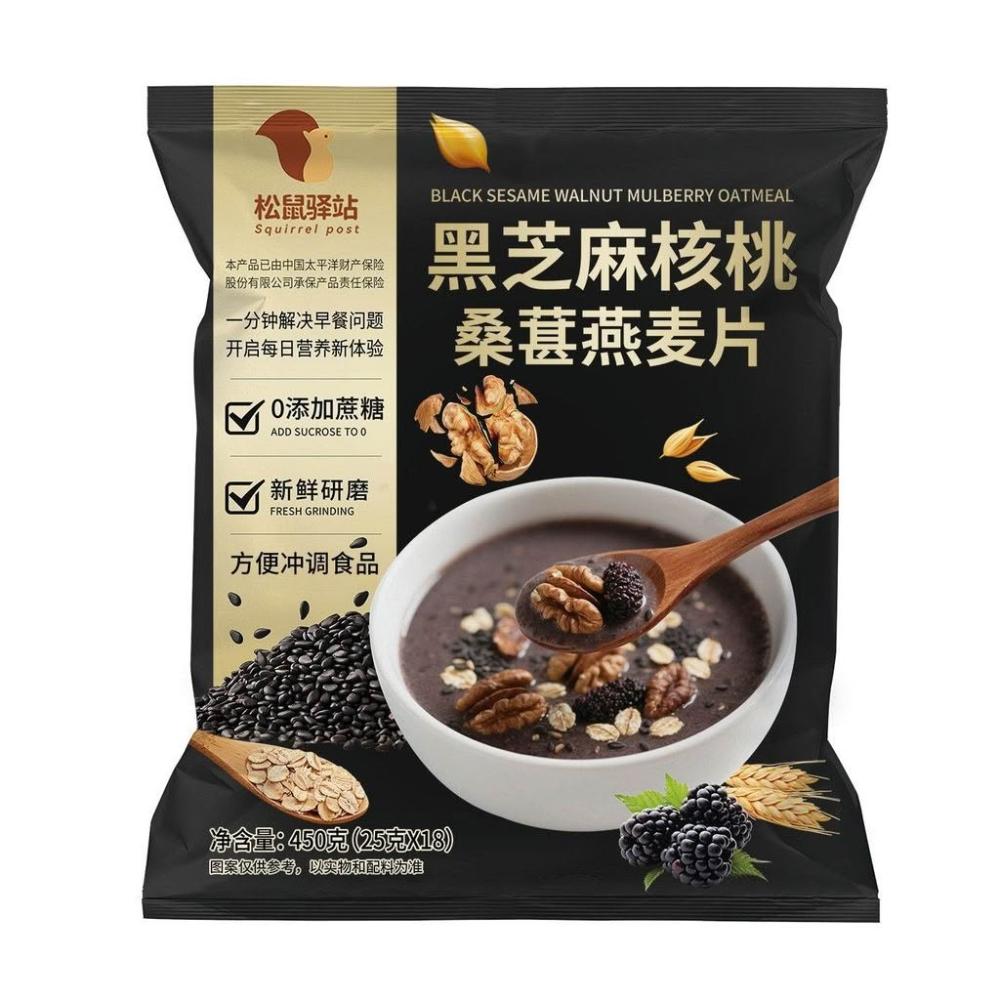 娜娜精選松鼠驛站黑芝麻核桃桑葚燕麥片早餐粥芝麻糊450g獨立包裝