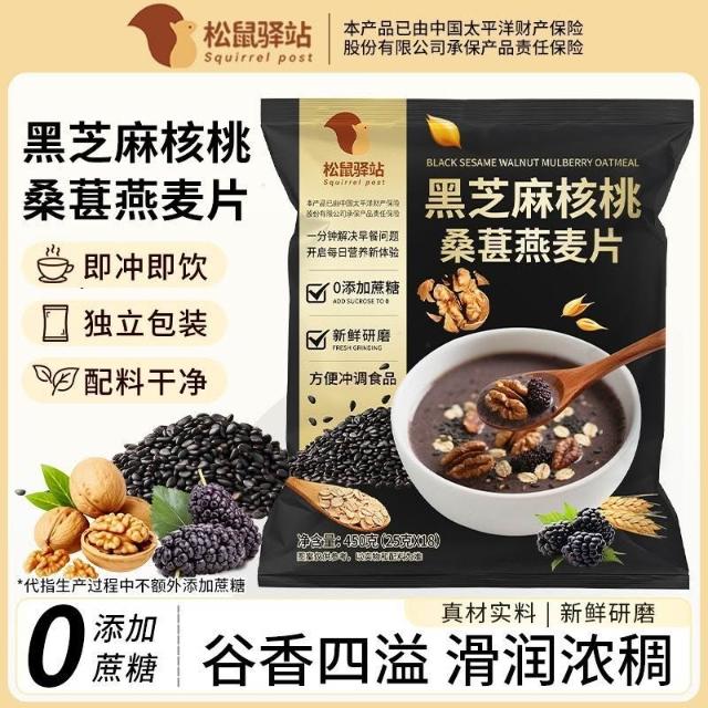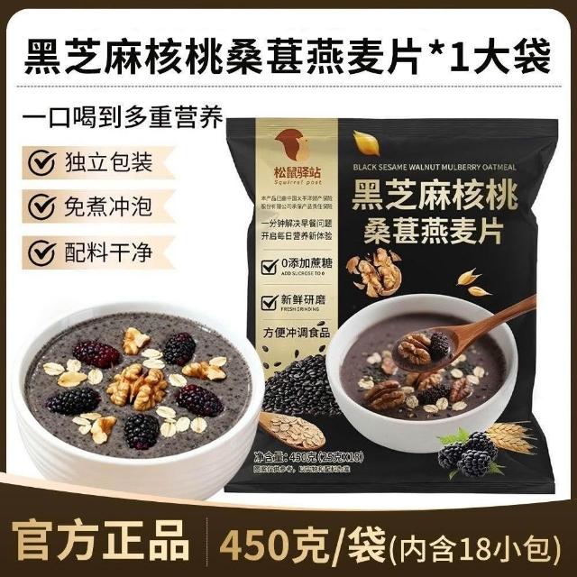 娜娜精選松鼠驛站黑芝麻核桃桑葚燕麥片早餐粥芝麻糊450g獨立包裝