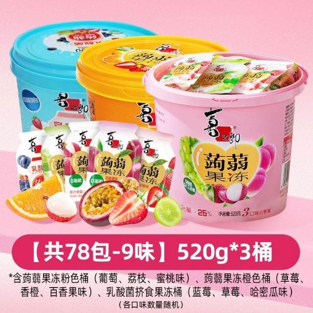 娜娜精選喜之郎蒟蒻果凍520/1800克桶裝兒童解饞小零食大禮包0脂休閒食品