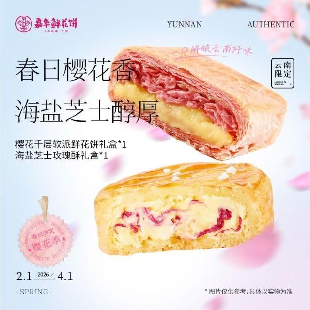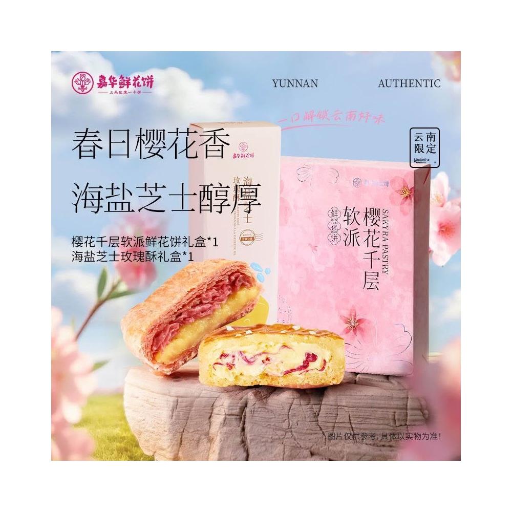 娜娜精選嘉華鮮花餅280g櫻花千層軟派海鹽芝士玫瑰酥盒裝雲南風味零食糕點
