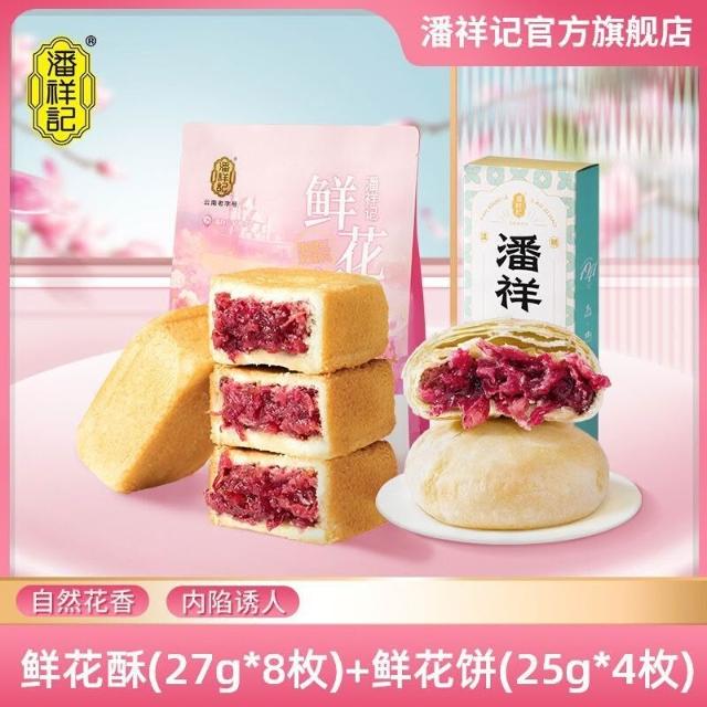 娜娜精選潘祥記玫瑰酥鮮花餅216g普洱茶玫瑰夾心糕點早餐零食禮袋