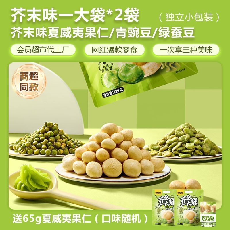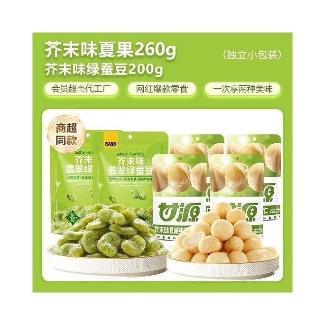 心心相印 甘源芥末味零食任選芥末味夏威夷果仁芥末味青豌豆綠蠶豆禮包組閤