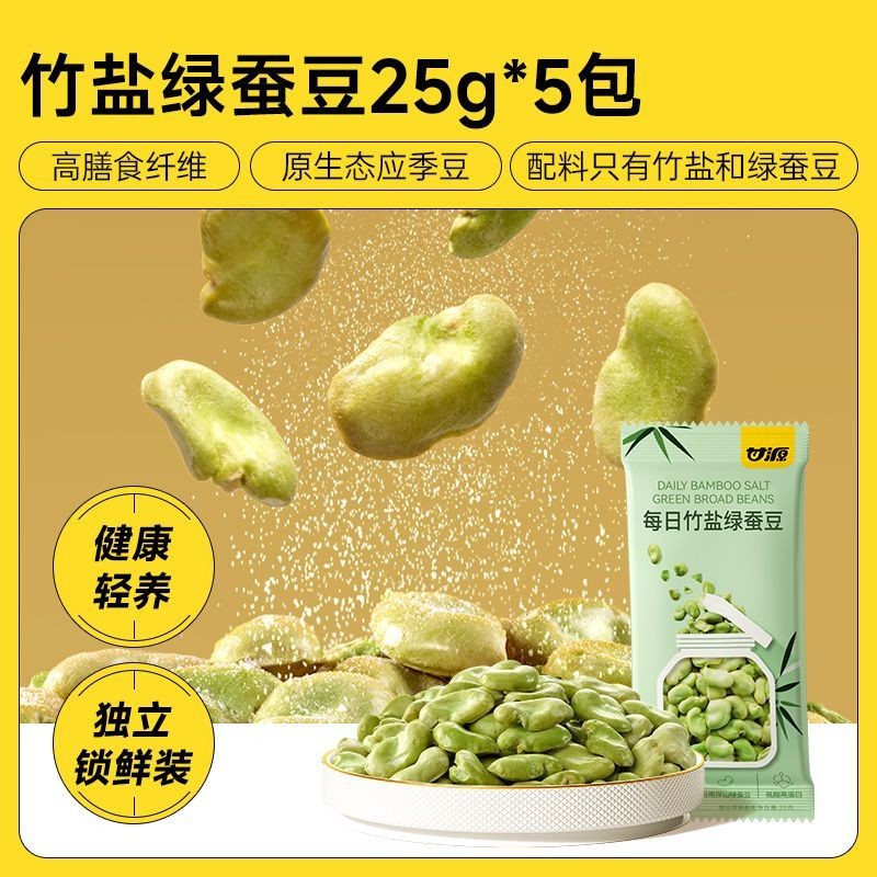 心心相印 甘源每日竹鹽烘烤蠶豆卽食無殻酥脆綠蠶豆解饞零食辦公室休閒小喫