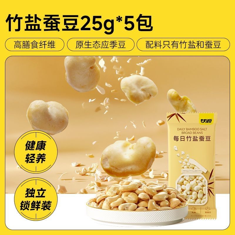 心心相印 甘源每日竹鹽烘烤蠶豆卽食無殻酥脆綠蠶豆解饞零食辦公室休閒小喫