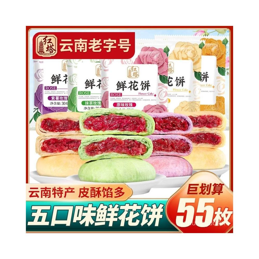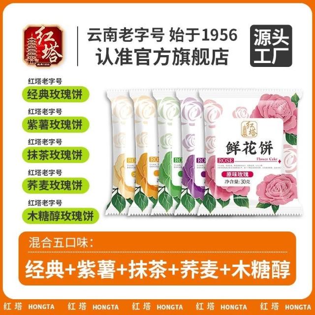 心心相印 紅塔五口味30g鮮花餅玫瑰抹茶花餅糕點心零食