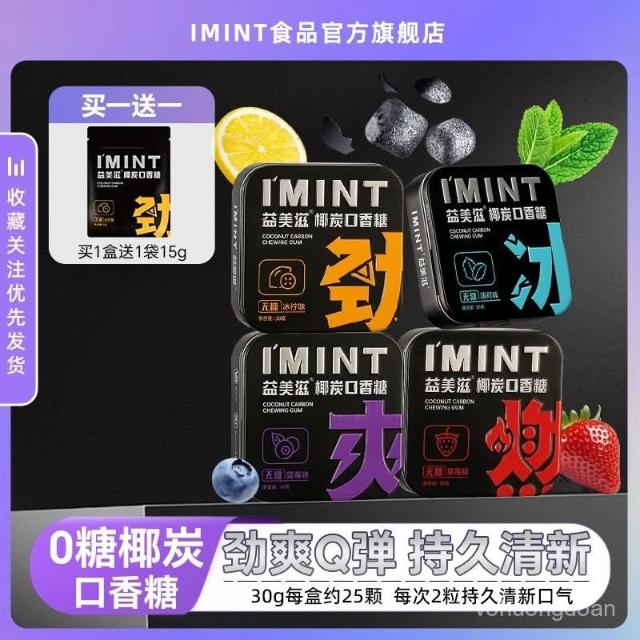 心心相印 IMINT無糖椰炭口香糖清新口氣隨身攜帶便攜木糖醇零食糖果泡泡糖