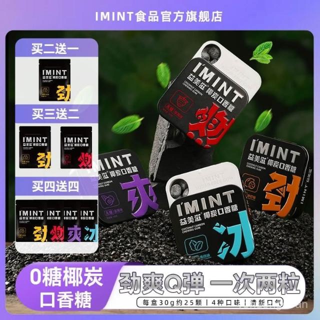 心心相印 【2盒】IMINT無糖口香糖清新口氣隨身攜帶零食富含維C薄荷糖糖果