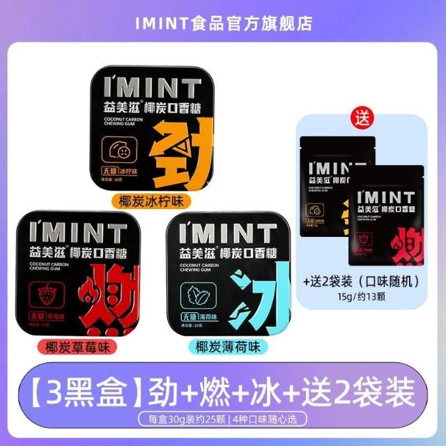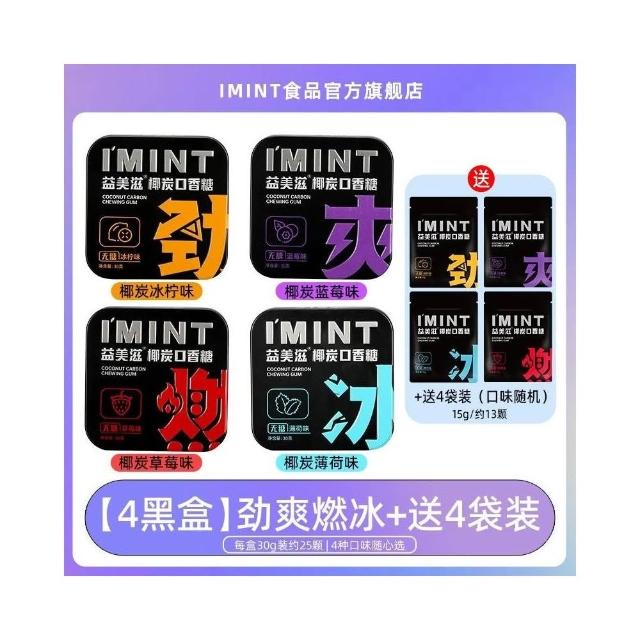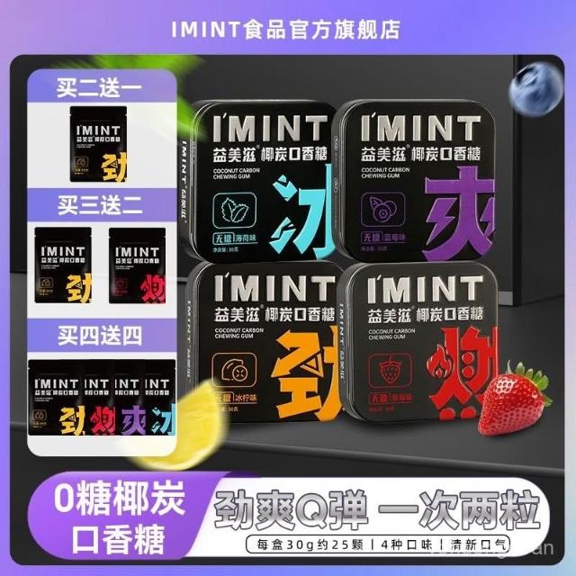 心心相印 IMINT無糖口香糖椰炭維C清新口氣糖果隨身攜帶零食木糖醇薄荷糖
