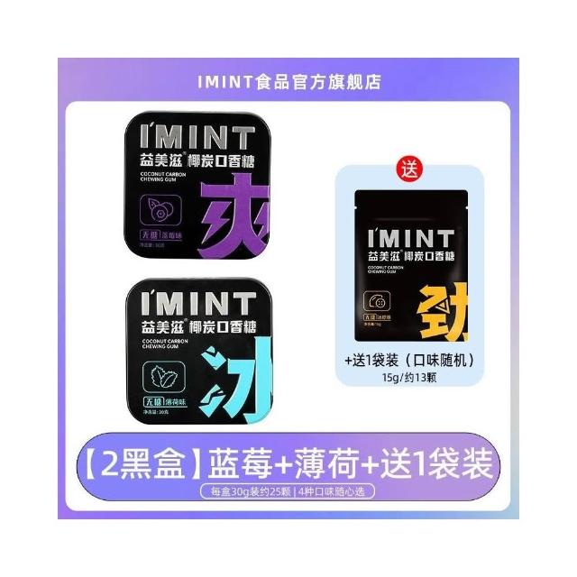 心心相印 IMINT無糖口香糖椰炭維C清新口氣糖果隨身攜帶零食木糖醇薄荷糖