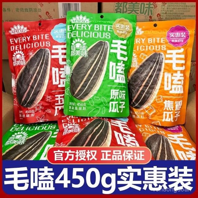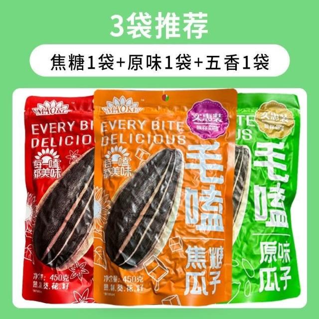 心心相印 洽洽毛嗑瓜子450g原味焦糖五香瓜子實惠裝葵花籽堅果休閒小零食