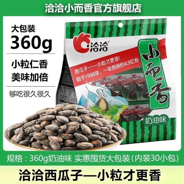 心心相印 洽洽小而香西瓜子360g奶油味大包裝袋中袋打瓜子炒貨休閒追劇零食