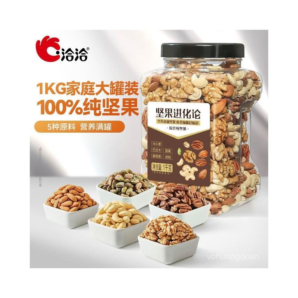 心心相印 洽堅果進化論每日堅果罐裝1000g大桶分享裝純堅果果幹休閒零食