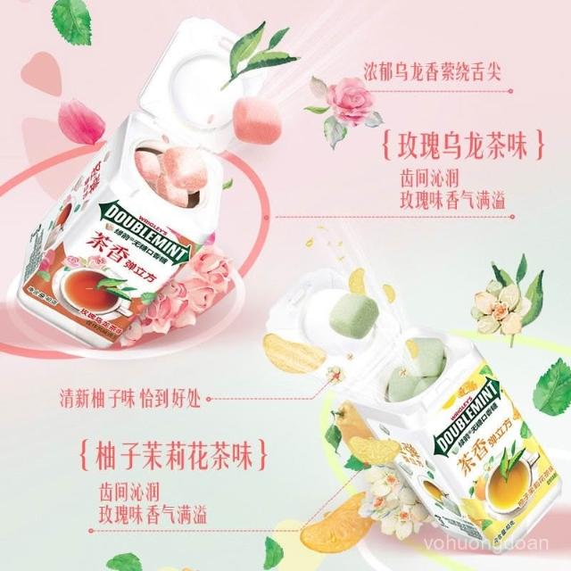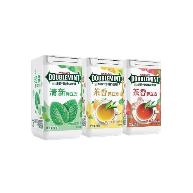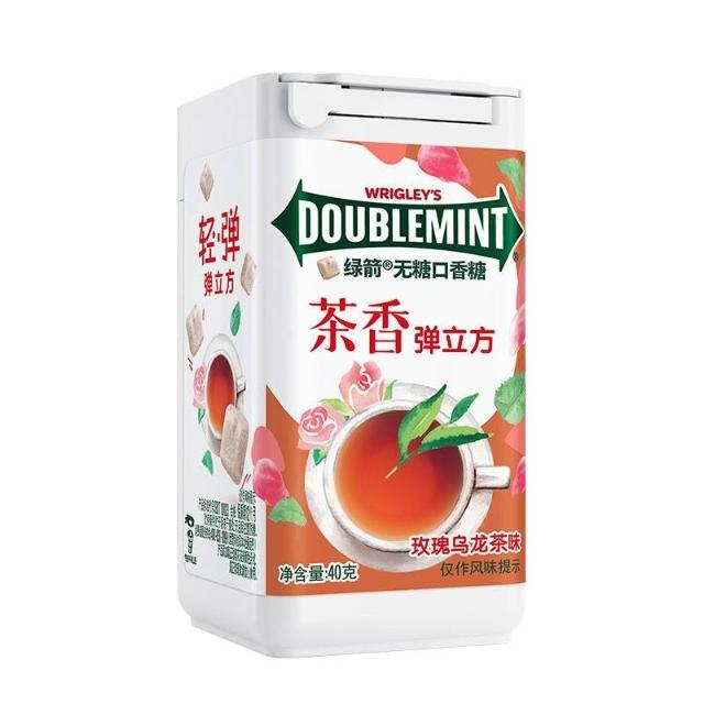心心相印 綠箭茶香彈立方口香糖40g瓶裝無糖果清新玫瑰烏龍茶立方