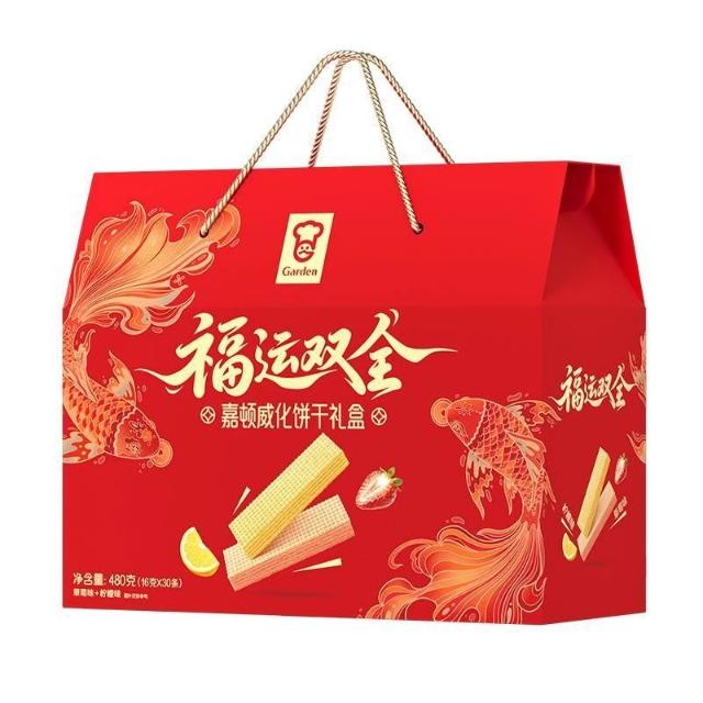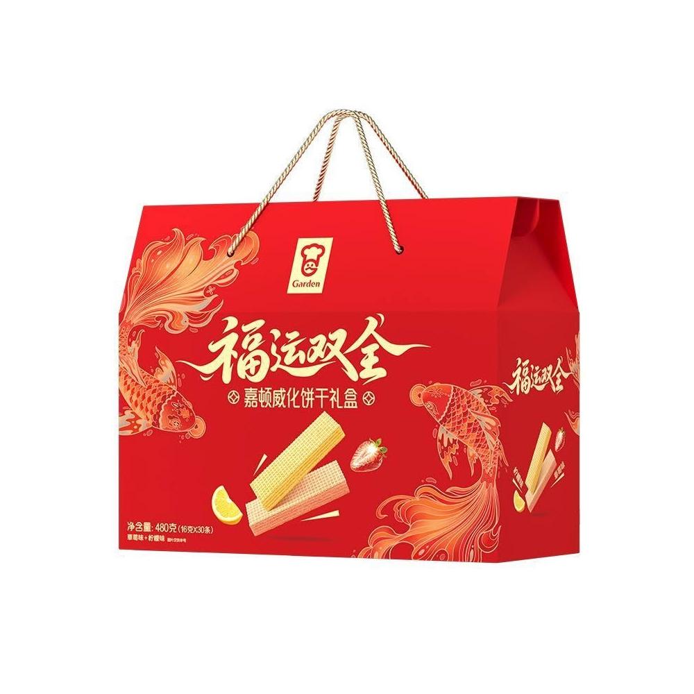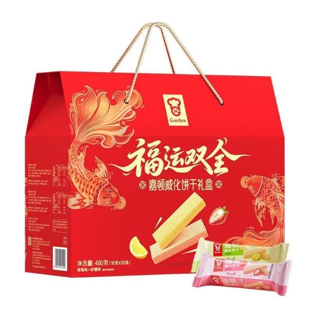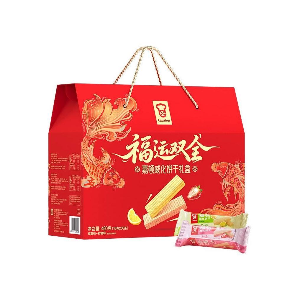 嚴選美食嘉頓福運雙全威化餅乾禮盒裝480g送禮員工福利團購