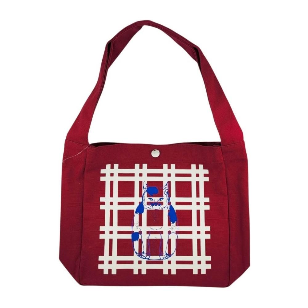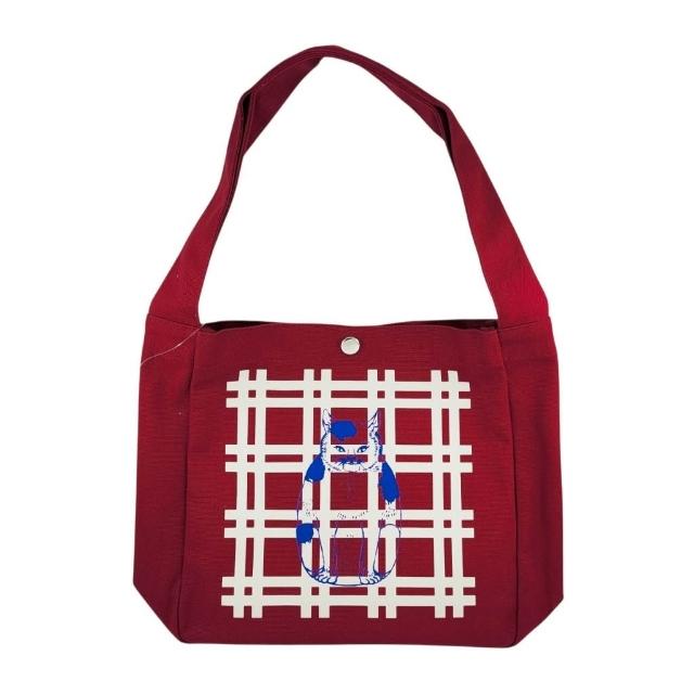 Vintage+。復古家。日本 NIPPON DNA 手提袋 。招財貓 紅 和風 帆布包 帆布袋 肩背袋 袋子 (特價)