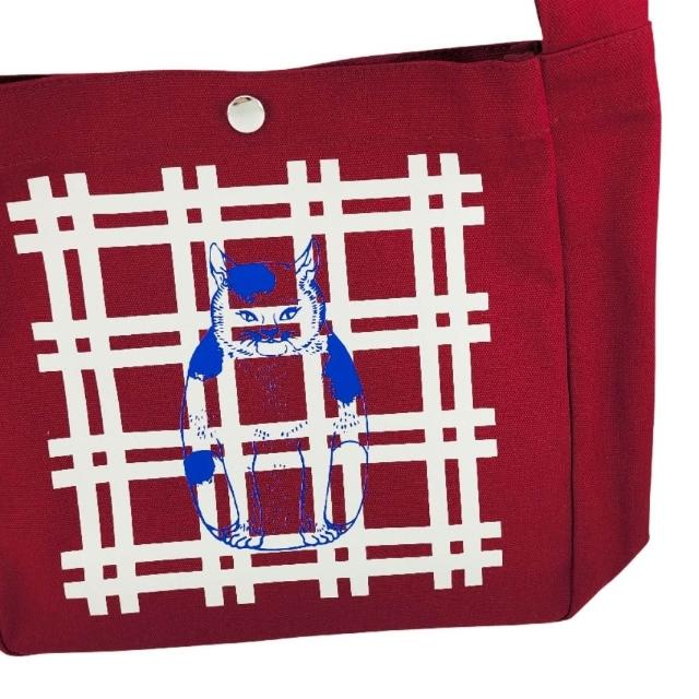 Vintage+。復古家。日本 NIPPON DNA 手提袋 。招財貓 紅 和風 帆布包 帆布袋 肩背袋 袋子 (特價)
