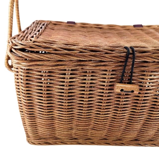 Vintage+。復古家。日本 野餐籃 。手提 有蓋 藤編 水果籃 收納籃 籃子 (長32cm 寬21cm)(特價)
