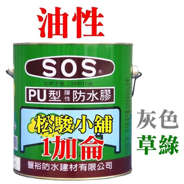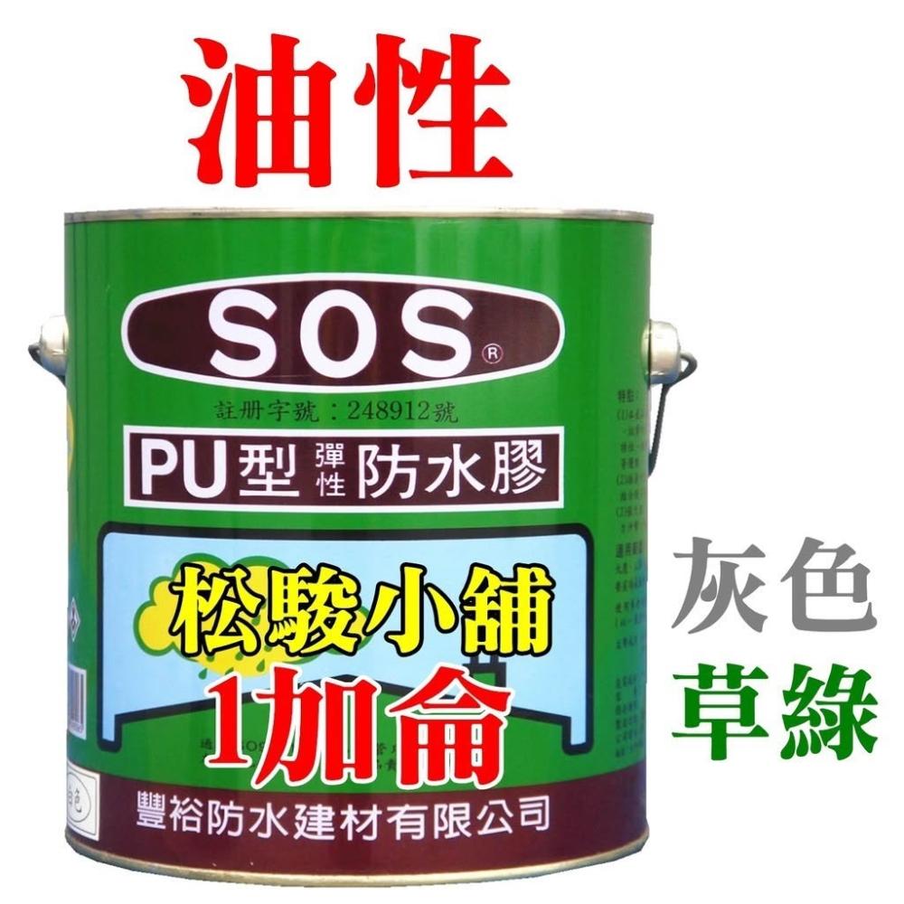 SOS1加侖 SOS PU型彈性防水膠 油性防水膠 灰色、草綠色【松駿小舖】 超商取貨限1加