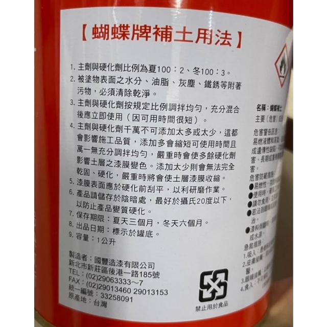 (1立裝)蝴蝶補土 含硬化劑組 汽車補土 模型補土 鈑金補土 機械補土 快乾硬度高 容易研磨