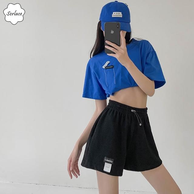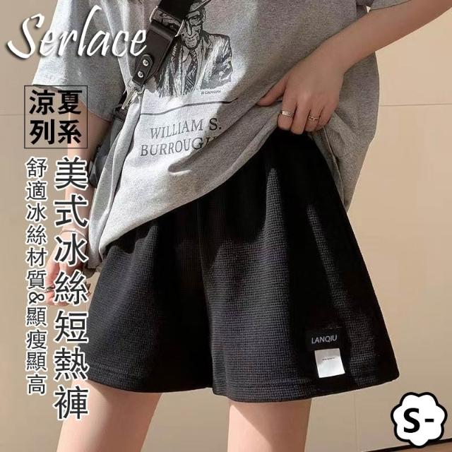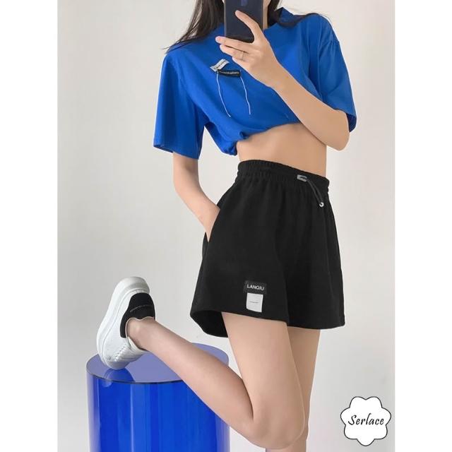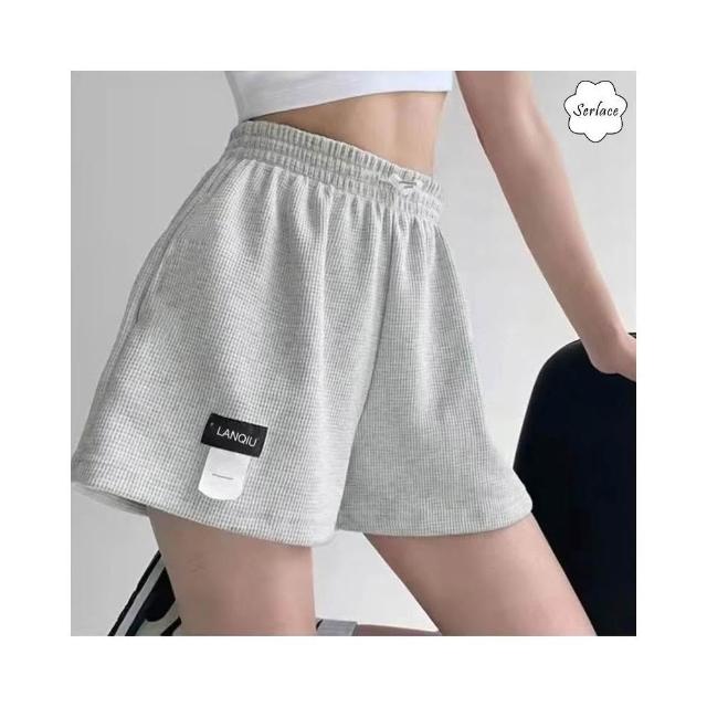 台灣出貨Serlace美式三分運動短褲運動褲夏季薄款休閒顯瘦顯高標籤褲外穿熱褲真理褲華格夫闊腿褲布褲百搭抽繩寬鬆褲居家褲