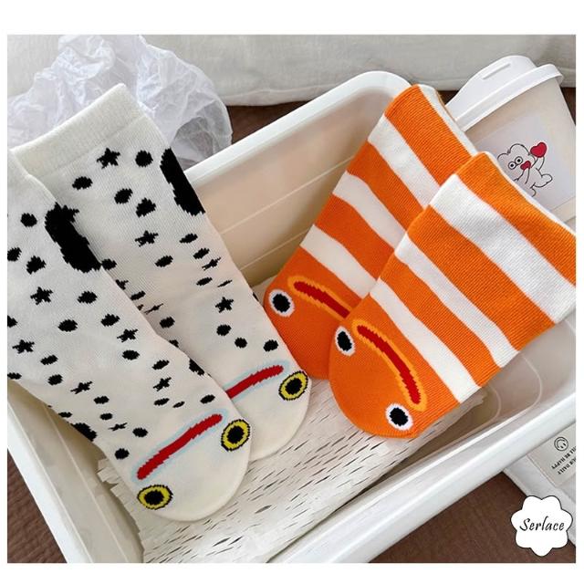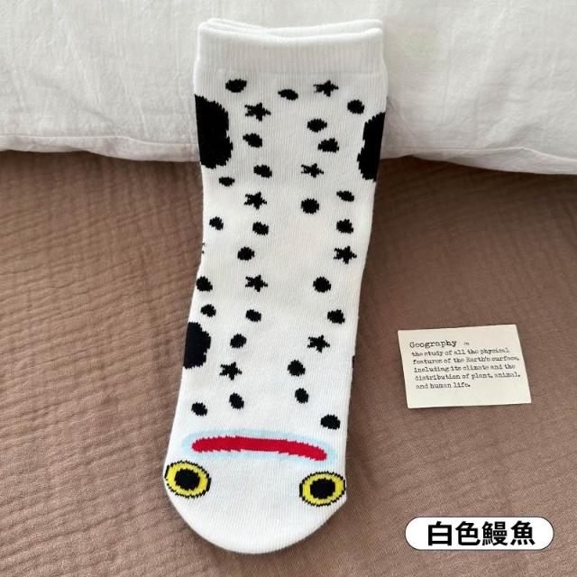 台灣出貨Serlace花園鰻魚襪子水族館薄棉夏季薄款學生襪情侶襪子學院風堆堆襪創意休閒搞怪條紋運動長襪女卡通襪中筒襪