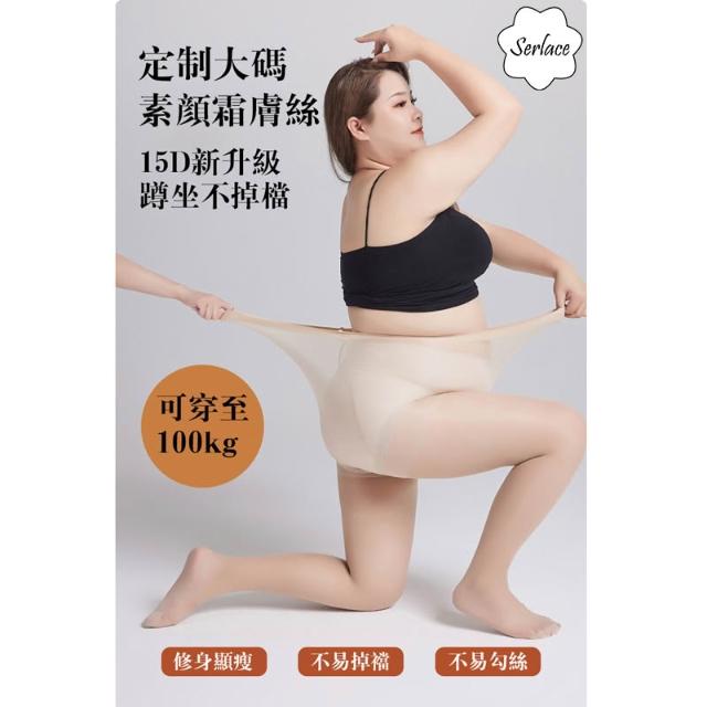 台灣出貨Serlace大碼絲襪 女光腿神器 15D加大加寬連腳絲襪連褲襪春夏不掉檔不勾絲 超薄黑絲顯瘦遮瑕絲襪PLUS