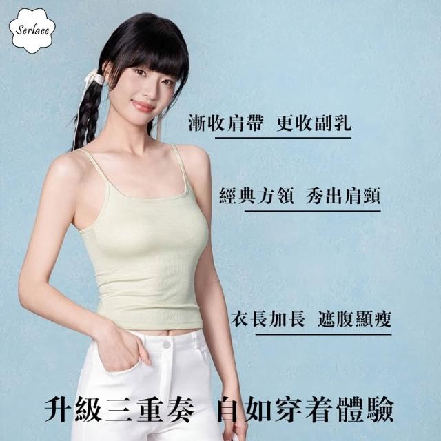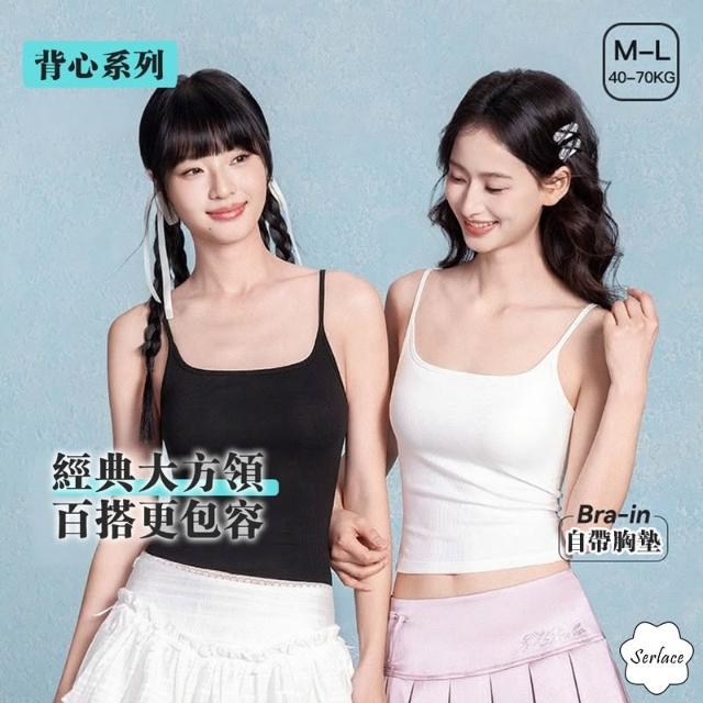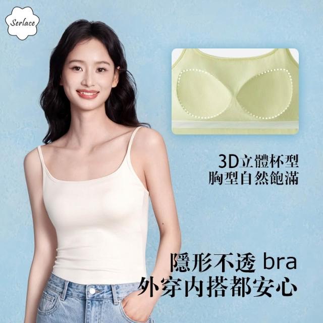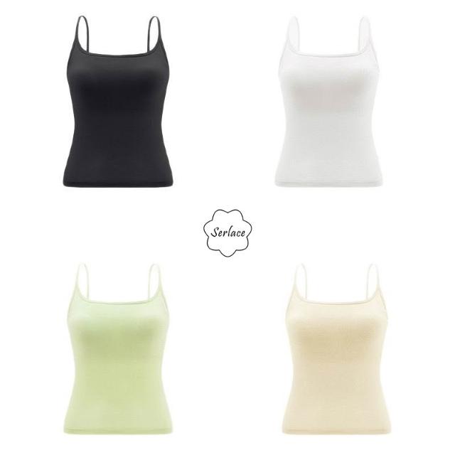 台灣出貨Serlace方領吊帶背心女夏外穿帶胸墊帶杯美背內衣一體式無痕白色貼身緊身修身輕薄透氣無袖內搭舒適背心帶文胸上衣