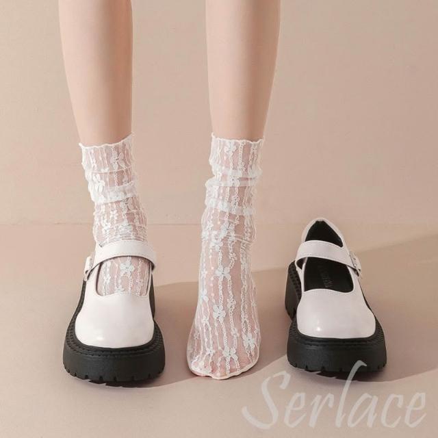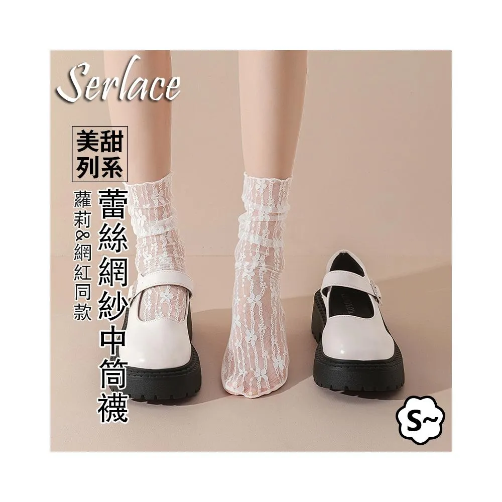 台灣出貨Serlace白色蕾絲襪子瑪麗珍網紗甜美LOLITA短襪絲襪直筒襪長襪堆堆襪紗網襪女僕裝COSPLAY學生襪