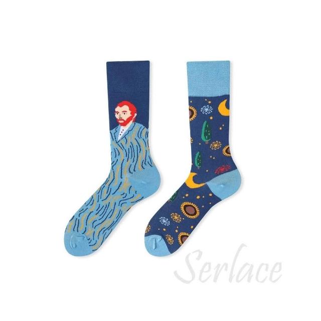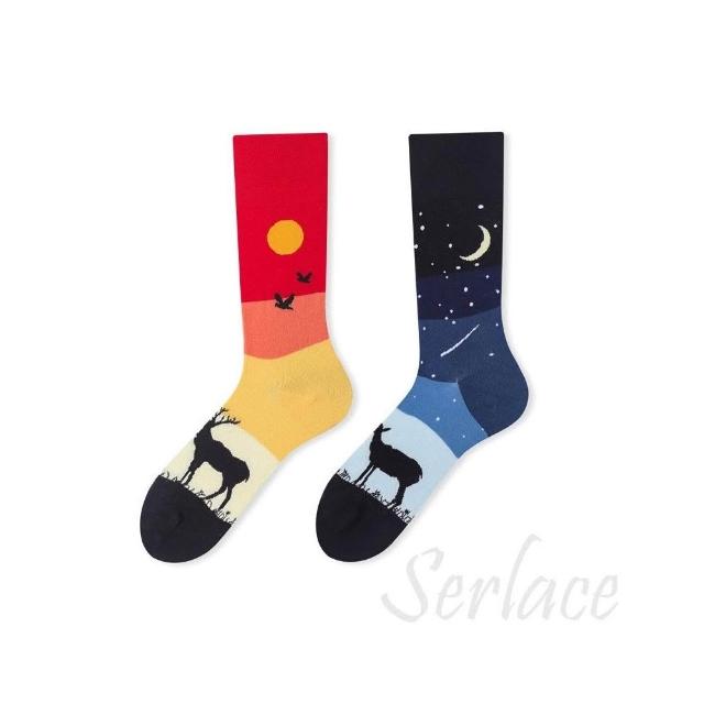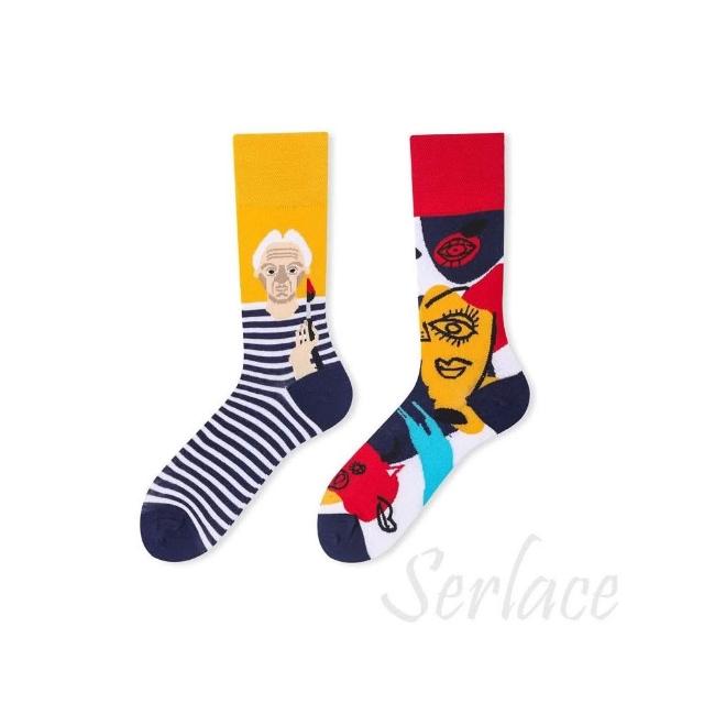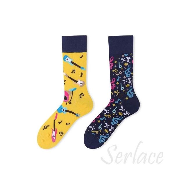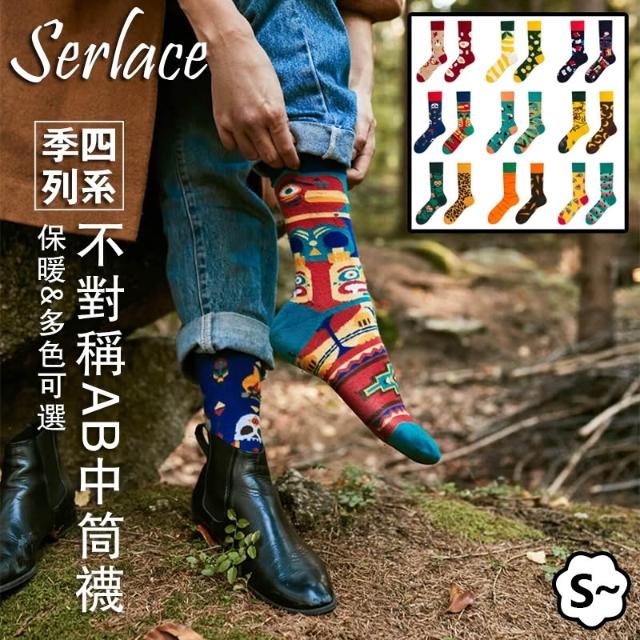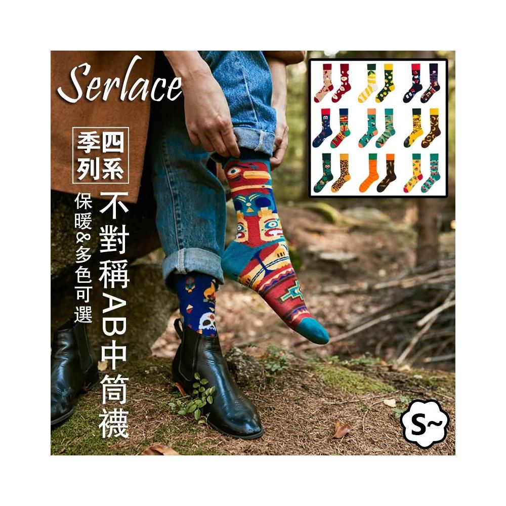 台灣出貨Serlace原創AB襪歐美時尚個性網紅中筒襪不對稱襪子鴛鴦襪彩色潮襪棉襪秋冬卡通創意情侶襪街頭流行襪