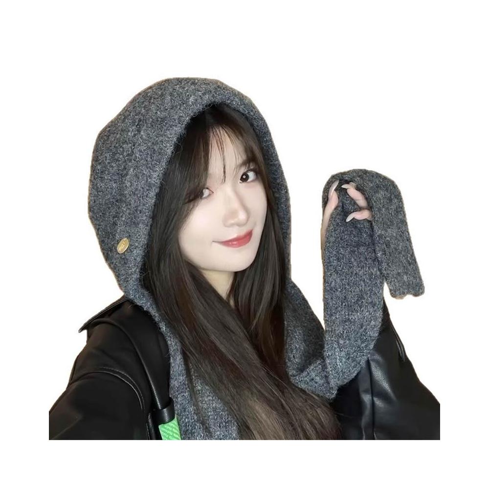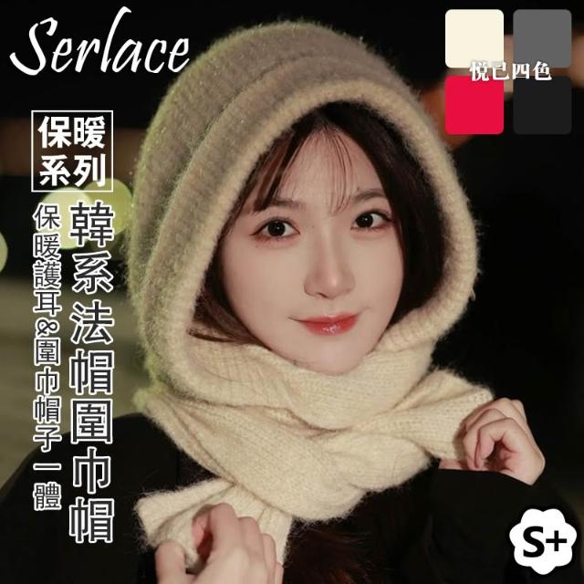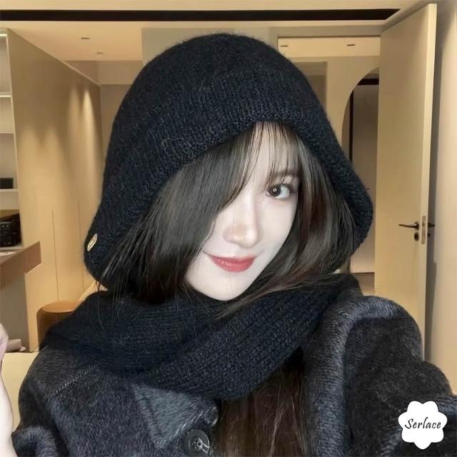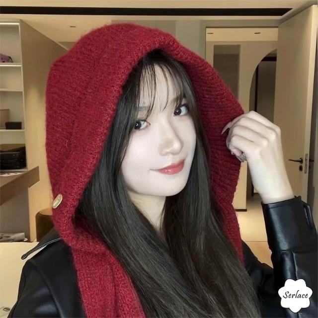 Serlace巴拉克拉法帽圍巾帽披肩帽衫 穿搭一體圍巾帽防寒保暖針織毛線帽 護耳秋冬季ins韓系顯臉小帽子
