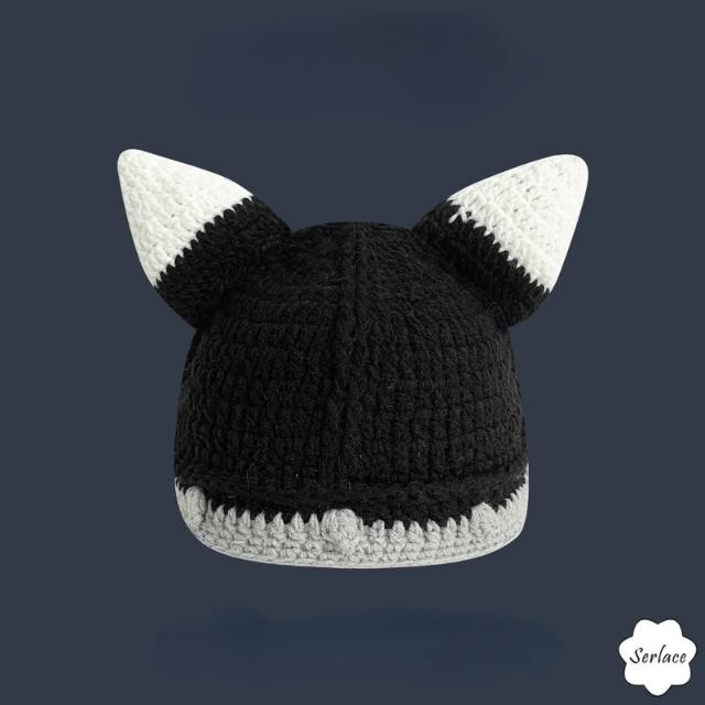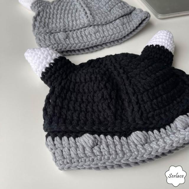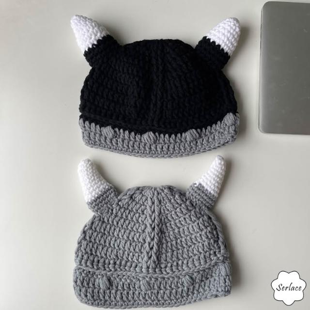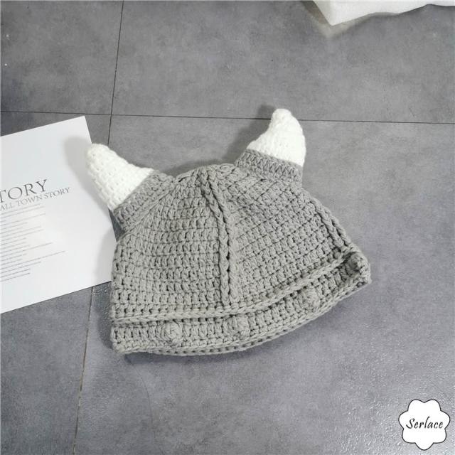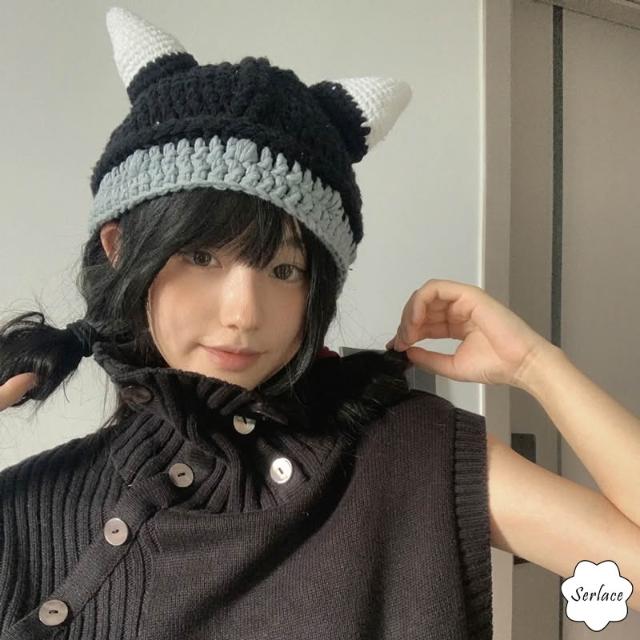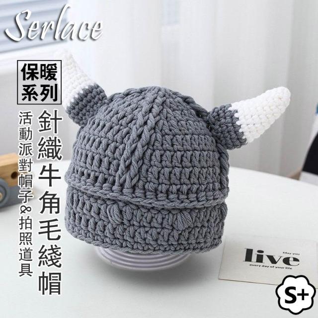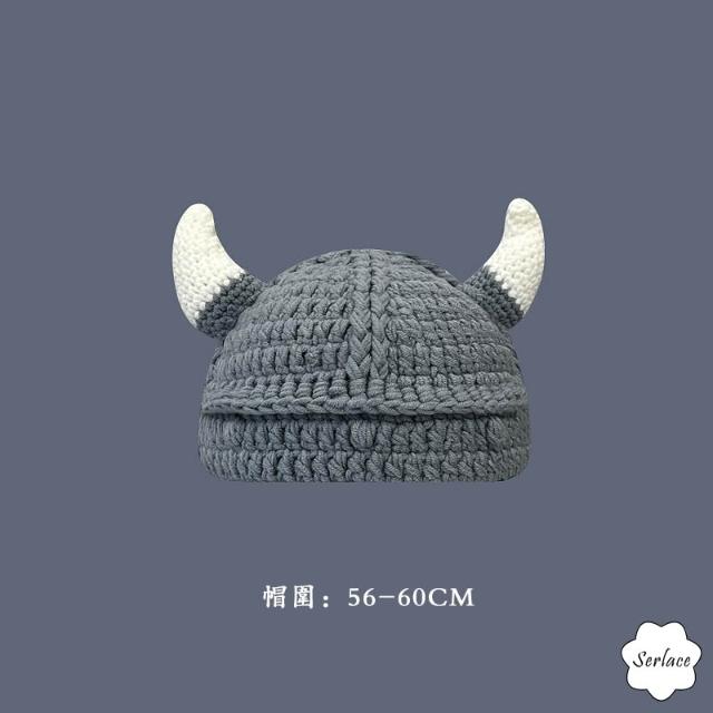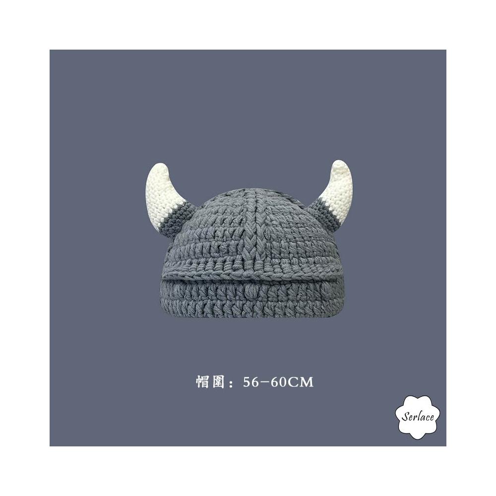 Serlace牛角帽 灰色牛角帽 搞怪毛線帽 編織毛線帽網美同款毛線帽交換禮物生日禮物 抖音同款毛線帽 毛線帽 搞怪帽子