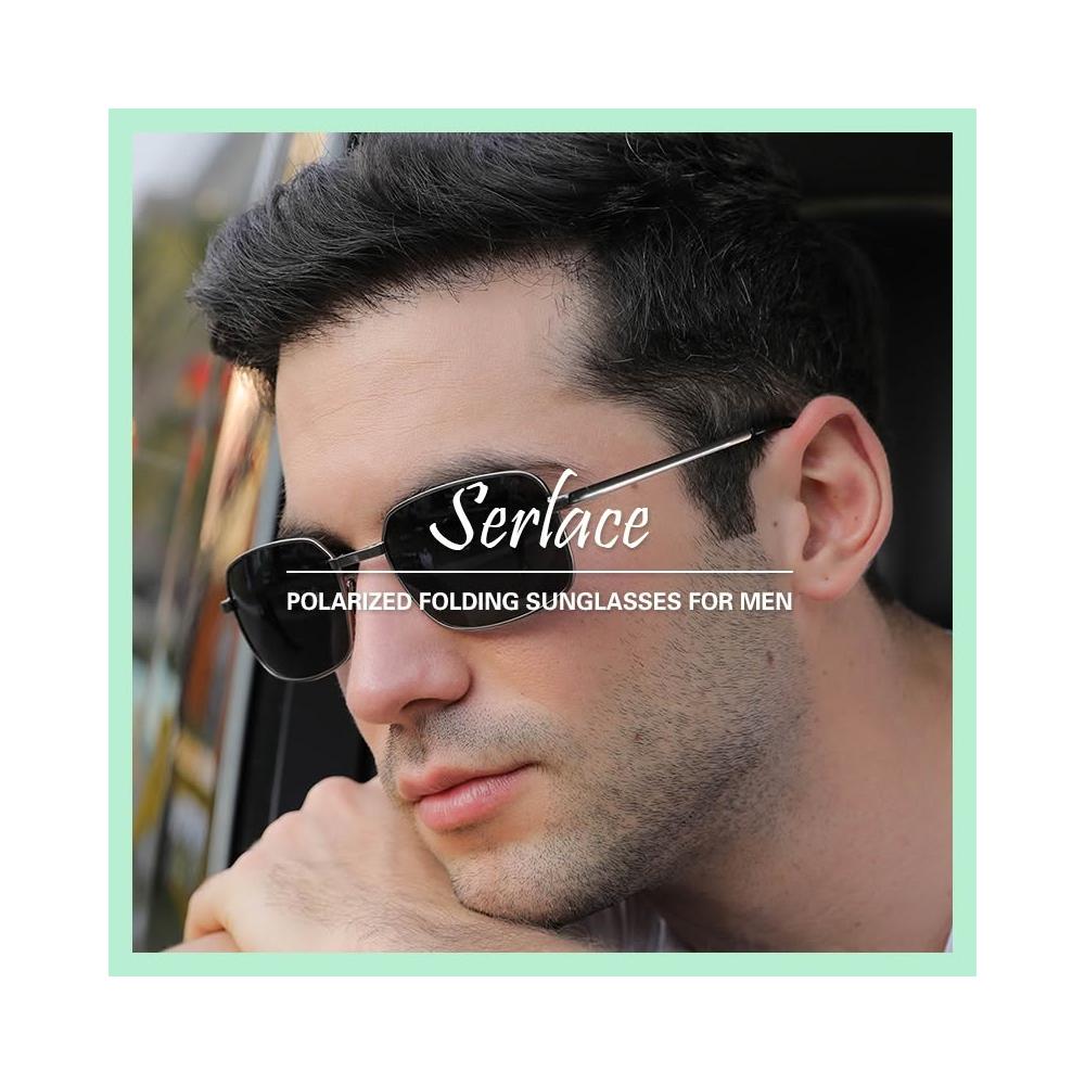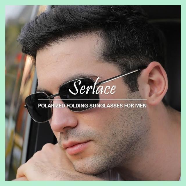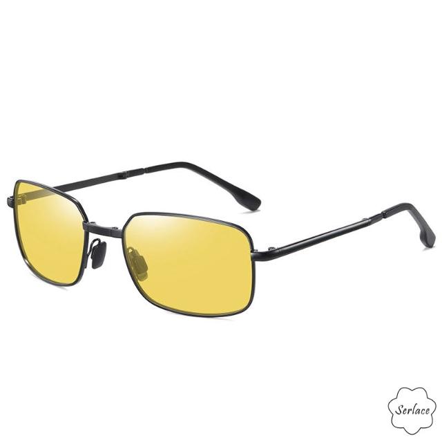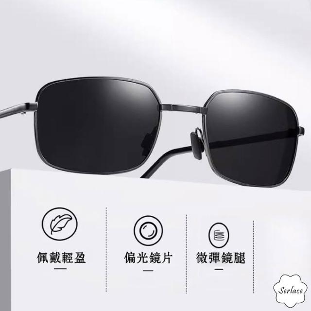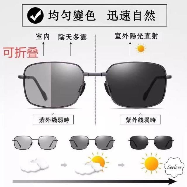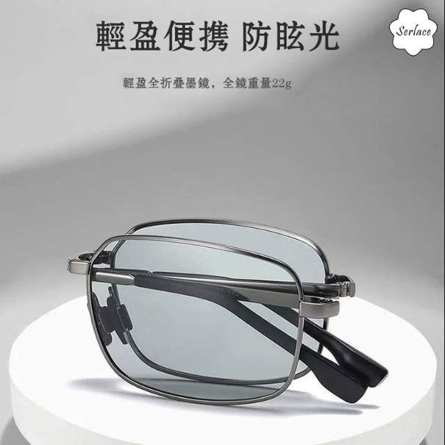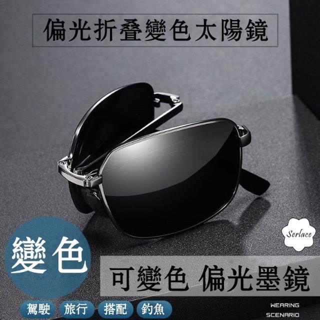 Serlace折疊偏光太陽眼鏡 變色鏡片金屬框男士墨鏡 飛行員眼鏡 太陽墨鏡 防紫外線復古經典款金屬墨鏡開車防曬