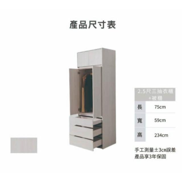 沐家具 mufurnitureHyacinth白榆木2.5尺三抽衣櫃+被櫃/收納櫃/置物櫃/臥室/台灣製造