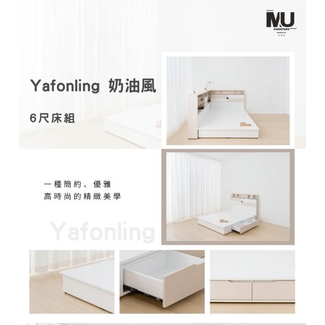 沐家具 mufurnitureYafonling 奶油風 6尺/5尺床組/台灣製造/木心板/雙人/加大/床邊櫃