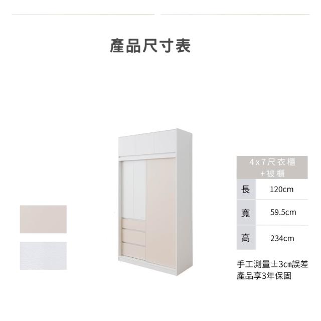 沐家具 mufurnitureYafonling 奶油風 4x7尺滑門衣櫃/台灣製造/木心板/臥室收納