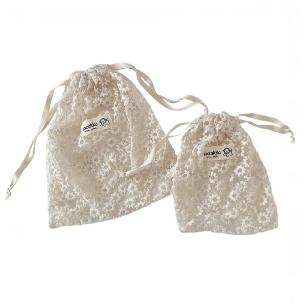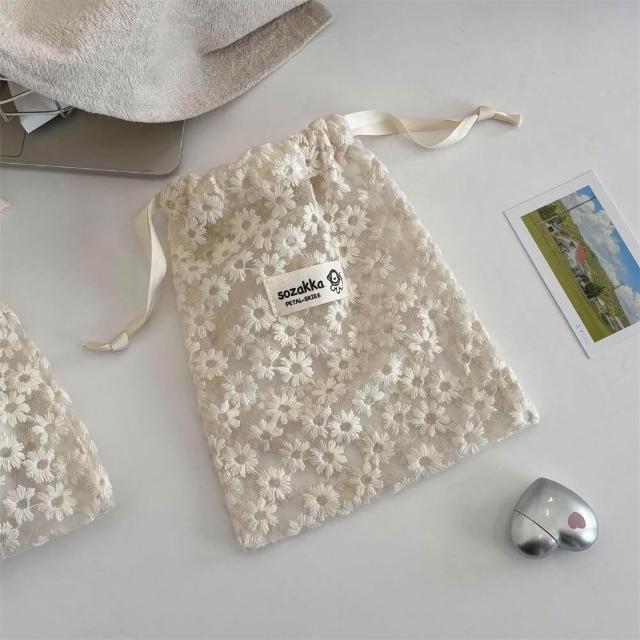 蕾絲刺繡束口袋 蕾絲束口袋 雛菊束口袋 刺繡袋 抽繩束口袋 小布包 束口袋 布包 布袋【舒活時品】