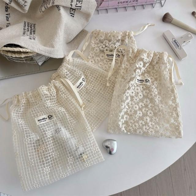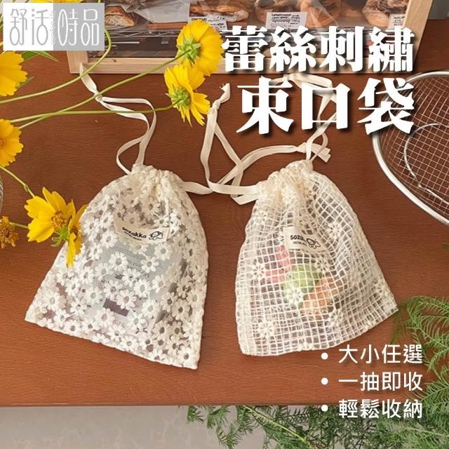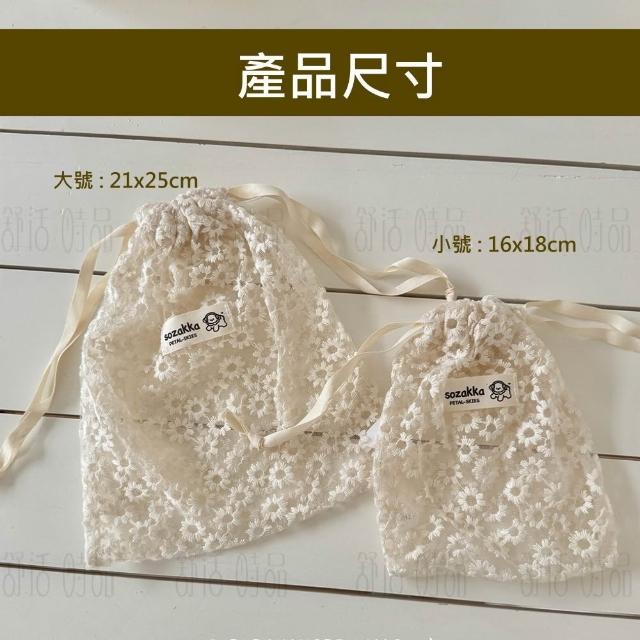 蕾絲刺繡束口袋 蕾絲束口袋 雛菊束口袋 刺繡袋 抽繩束口袋 小布包 束口袋 布包 布袋【舒活時品】