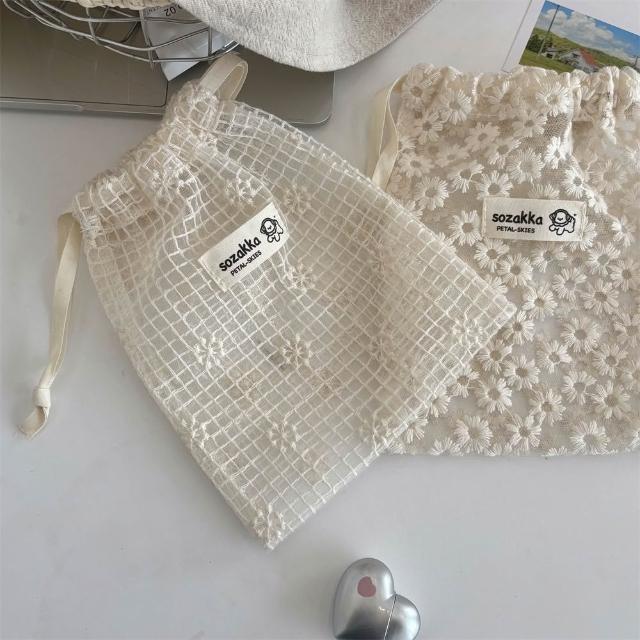 蕾絲刺繡束口袋 蕾絲束口袋 雛菊束口袋 刺繡袋 抽繩束口袋 小布包 束口袋 布包 布袋【舒活時品】