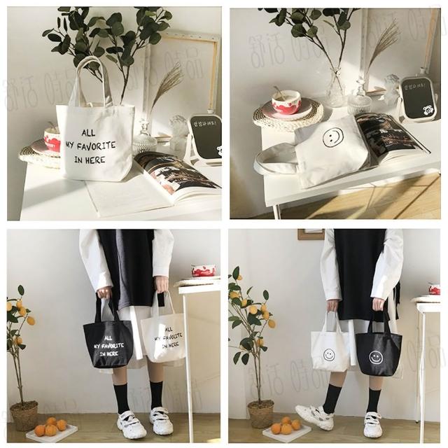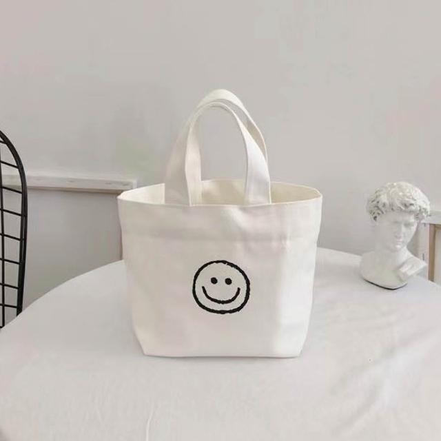 笑臉帆布包 手提袋 微笑帆布袋 收納袋 帆布袋 購物袋 手提袋 便當袋 環保袋 微笑提袋【舒活時品】