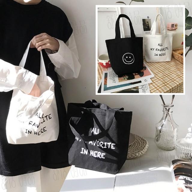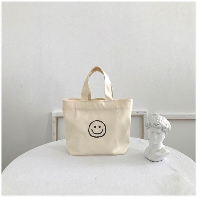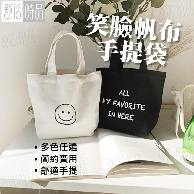 笑臉帆布包 手提袋 微笑帆布袋 收納袋 帆布袋 購物袋 手提袋 便當袋 環保袋 微笑提袋【舒活時品】