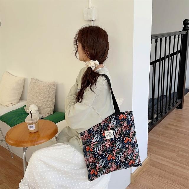 刺繡碎花手提袋 帆布袋 帆布包 文書袋 文件袋 收納袋 帆布袋 購物袋 手提袋 側背包 環保袋 提袋【舒活時品】