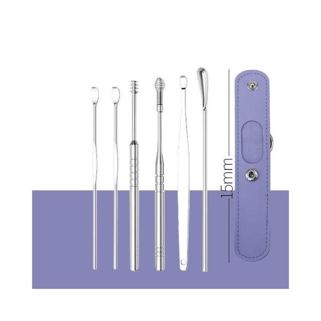不銹鋼掏耳勺 6件套裝 不鏽鋼耳勺 挖耳朵 耳匙 螺旋挖耳勺 掏耳勺 掏耳朵 便攜 收納皮套【舒活時品】