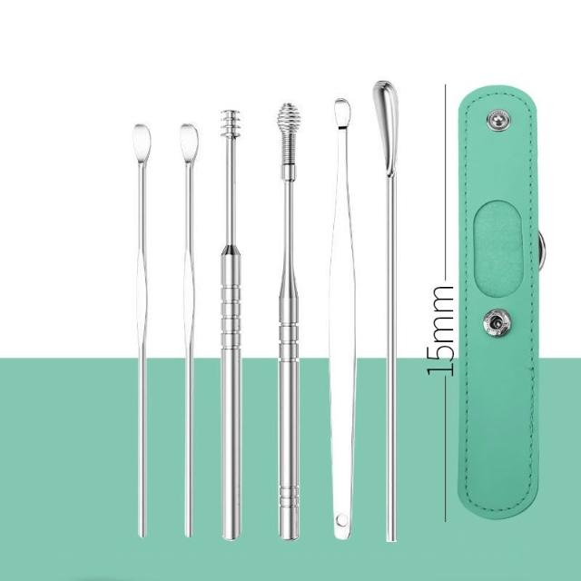 不銹鋼掏耳勺 6件套裝 不鏽鋼耳勺 挖耳朵 耳匙 螺旋挖耳勺 掏耳勺 掏耳朵 便攜 收納皮套【舒活時品】