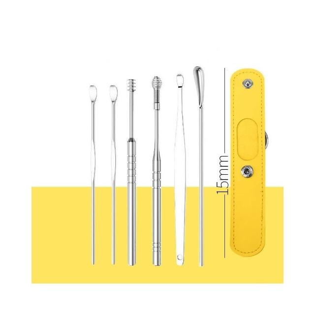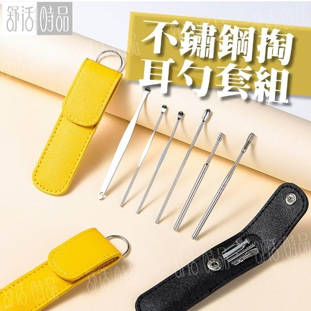 不銹鋼掏耳勺 6件套裝 不鏽鋼耳勺 挖耳朵 耳匙 螺旋挖耳勺 掏耳勺 掏耳朵 便攜 收納皮套【舒活時品】