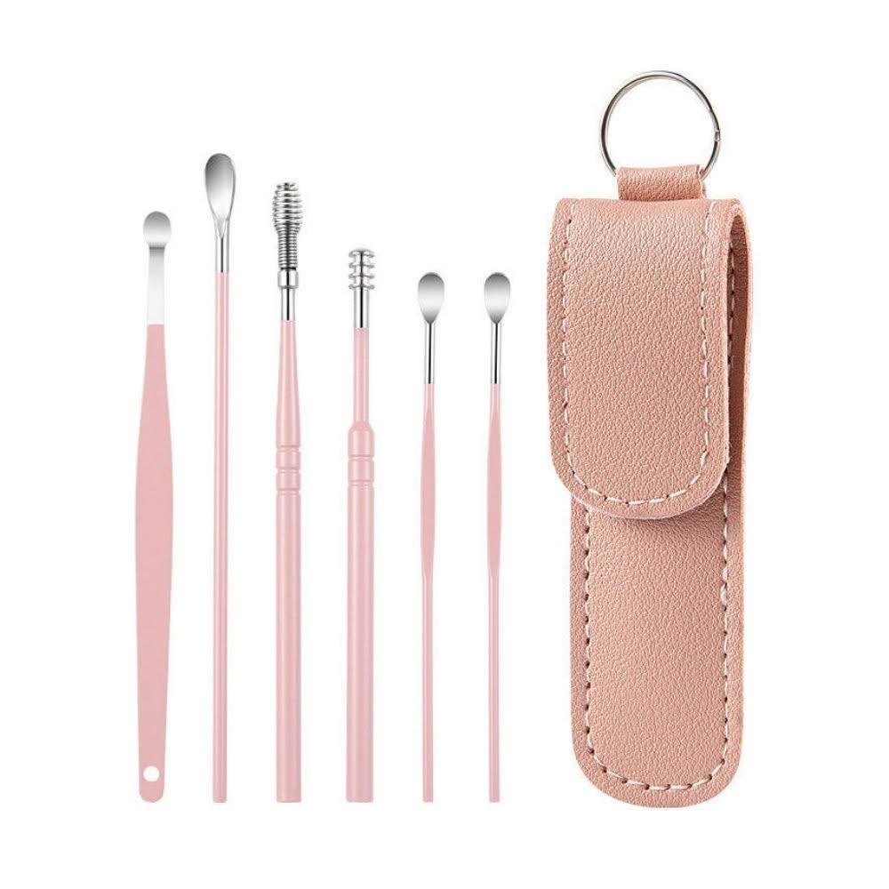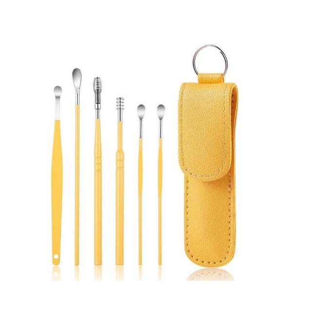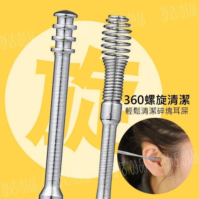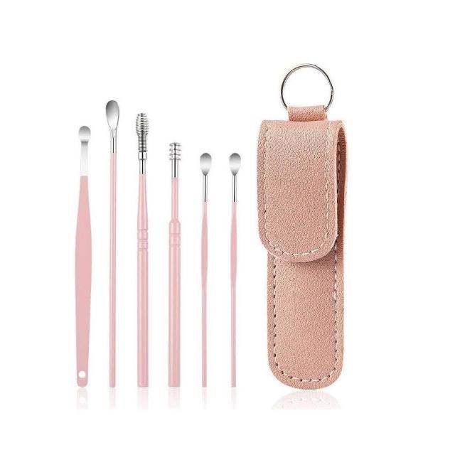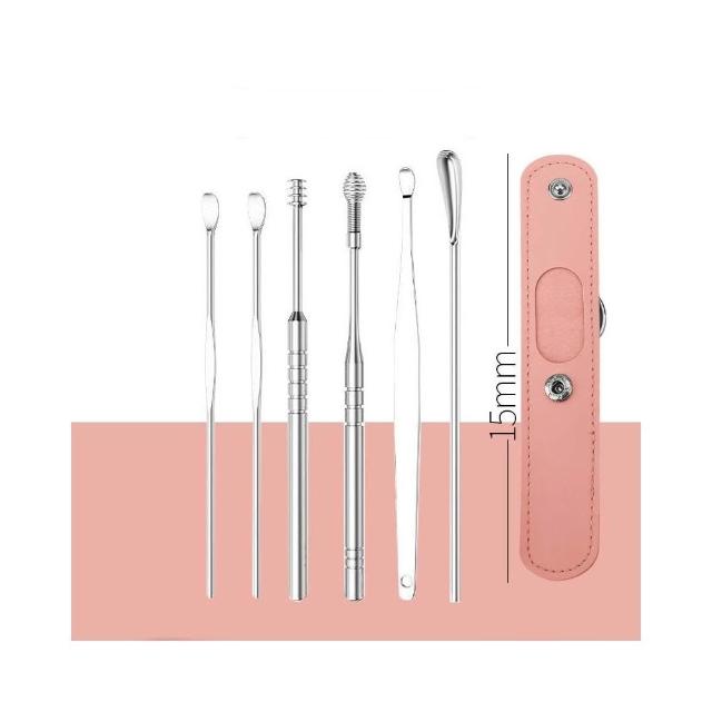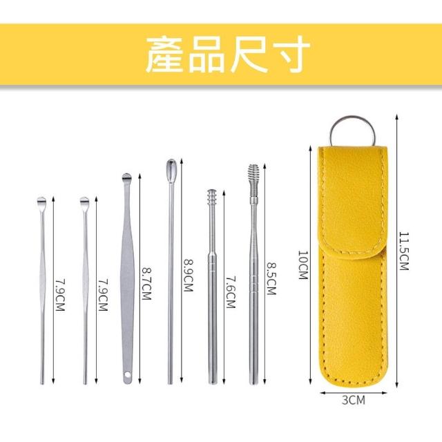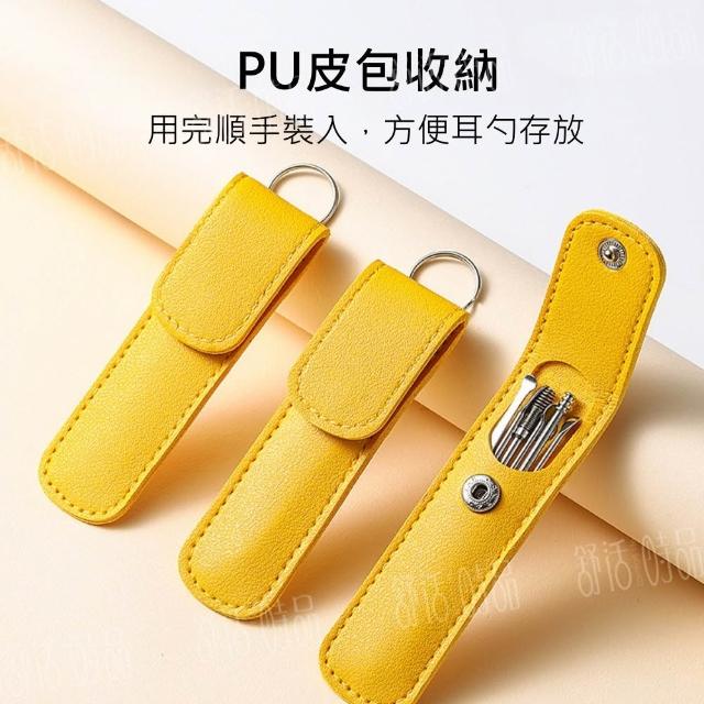 不銹鋼掏耳勺 6件套裝 不鏽鋼耳勺 挖耳朵 耳匙 螺旋挖耳勺 掏耳勺 掏耳朵 便攜 收納皮套【舒活時品】
