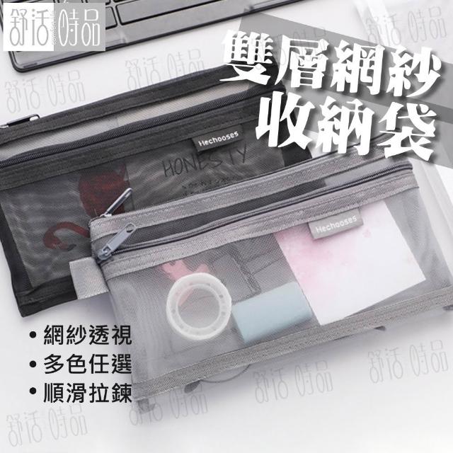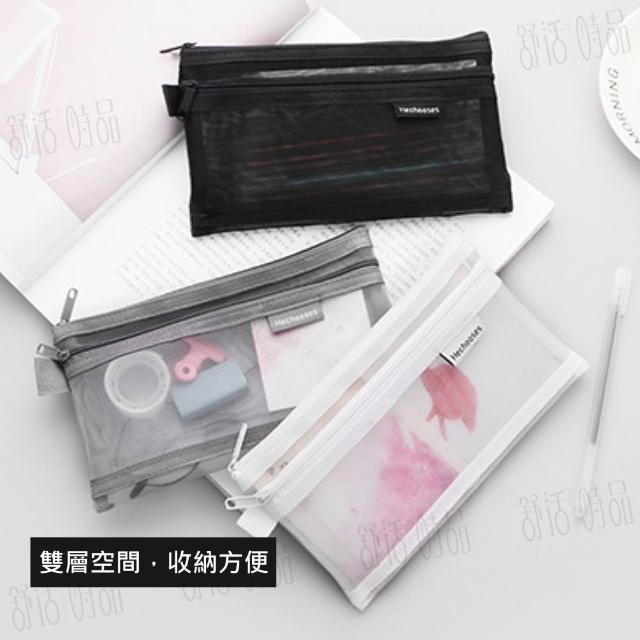 層網紗收納袋 網格包 無印風筆袋 網狀包 透明筆袋 透明袋 鉛筆盒 收納包 網紗筆袋 網紗袋【舒活時品