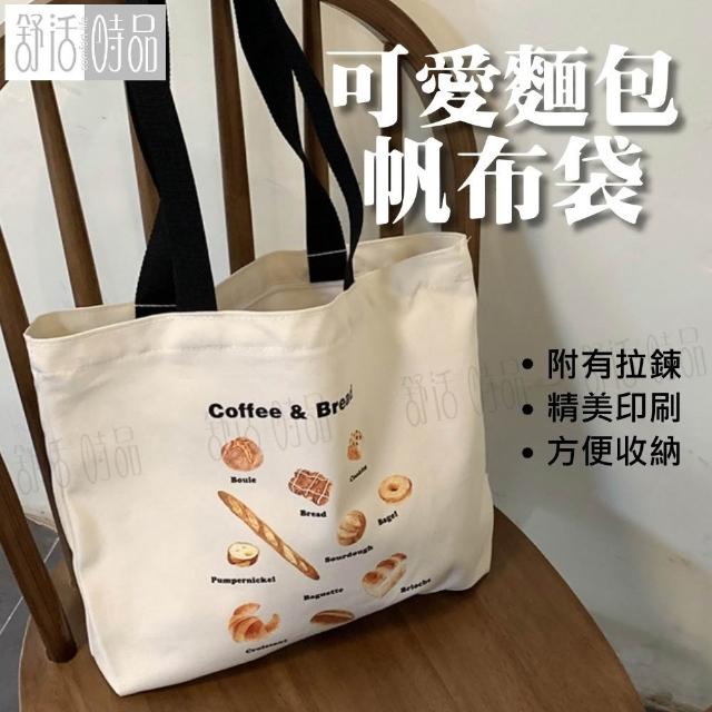 麵包帆布包 有拉鍊 收納包 文書袋 文件袋 收納袋 帆布袋 旅行收納包 書袋 麵包帆布袋【舒活時品】
